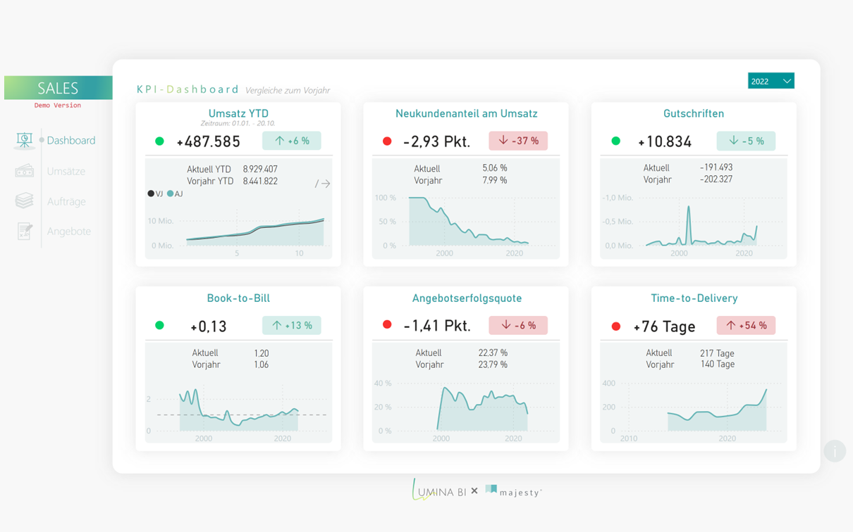 Wir spezialisieren uns auf die Entwicklung von Standard- und maßgeschneiderten Power BI-Berichten für majesty ERP Kunden.
